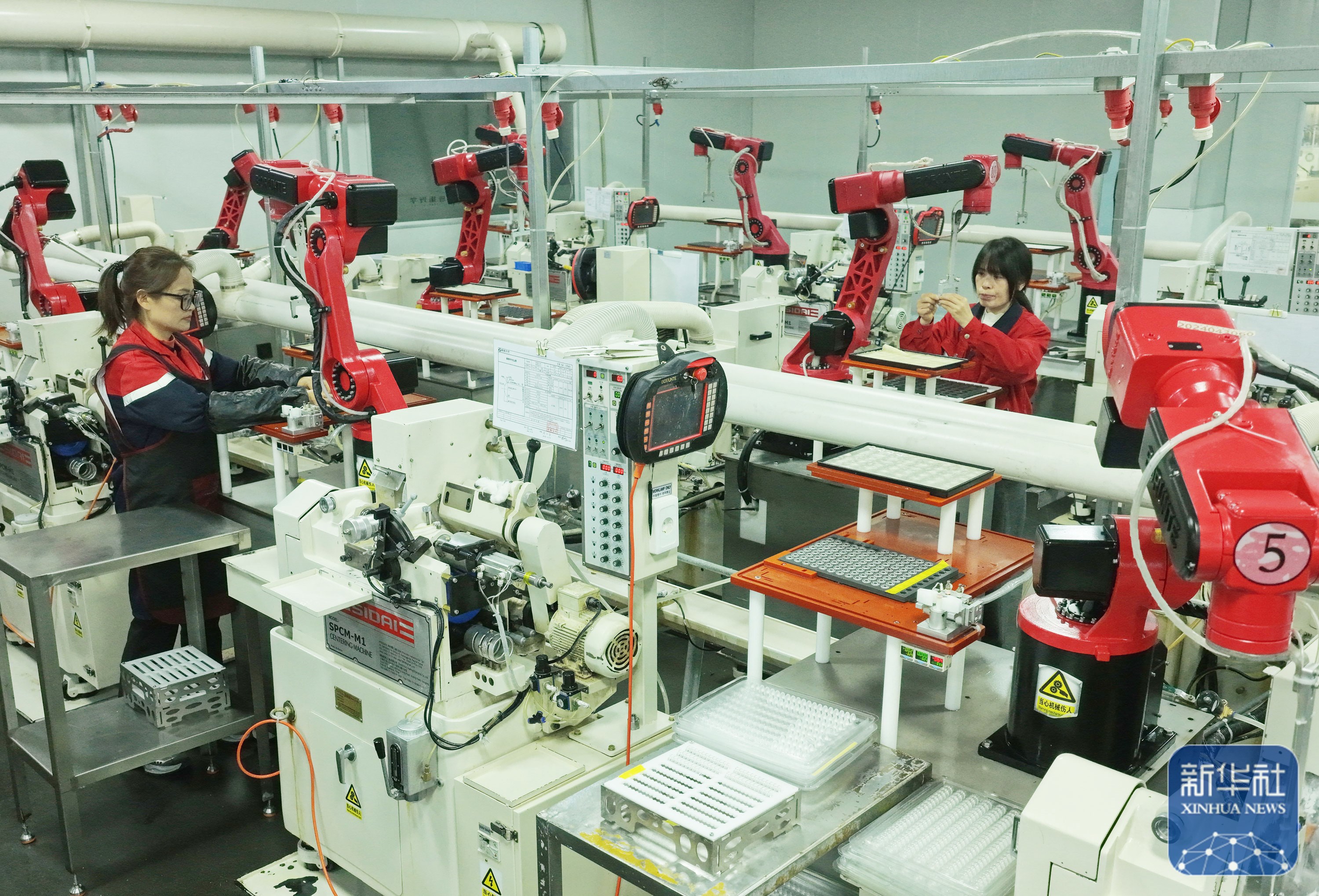 ↑ 2月24日,工人在位于湖北省秭归县的宜昌旌拓光学有限公司智能生产线上忙碌。新华社发(王罡摄)