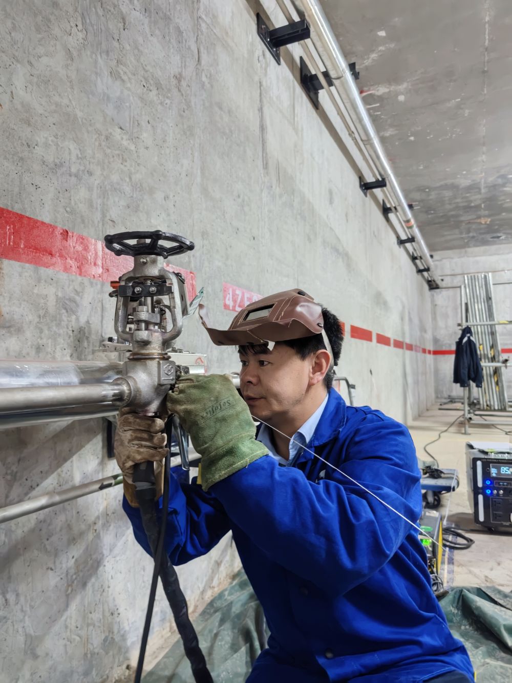 2026年1月25日,师延财在位于福建省福清市的核电厂房内进行焊接作业。