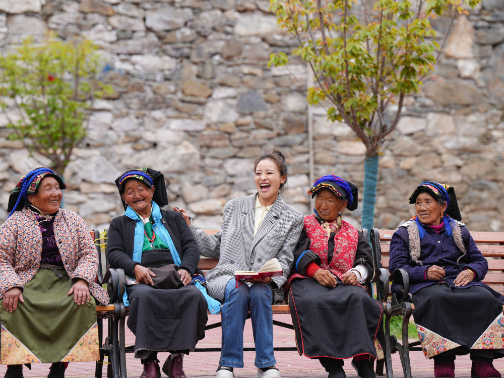 2025年5月16日,全国人大代表、四川省阿坝藏族羌族自治州马尔康市老年养护院院长格西王姆(中)和养护院的老人们交流。格西王姆除了管理和照料老人们的饮食起居,还把国家对老人们的关心关爱政策用“摆龙门阵”的方式传达给他们,将养老产业未来的发展前景及时分享给年轻同事和护工们。