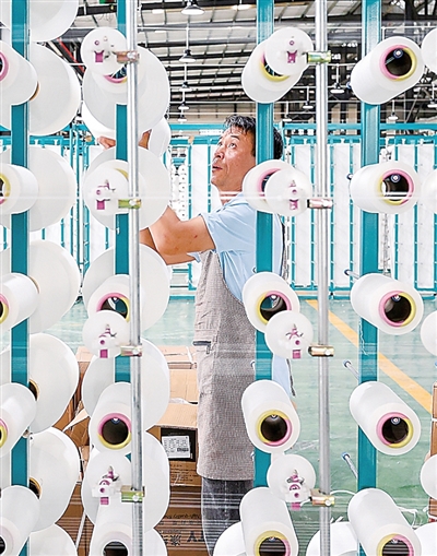 工人在毕节宏盛纺织科技有限公司纺织车间作业。李 华摄