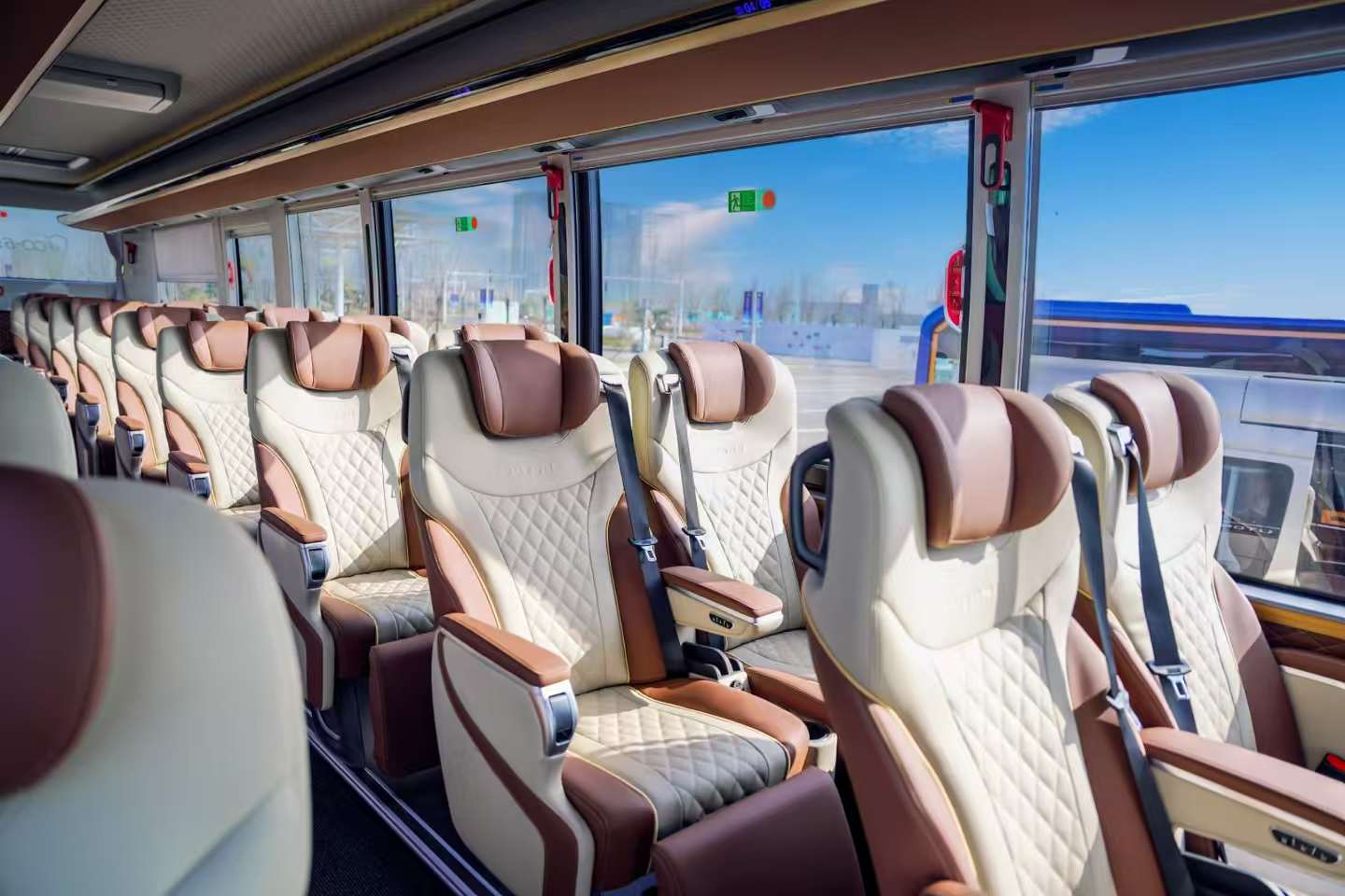 宇通百万旅游大巴,被誉为宇通最贵的大巴车。刚一亮相,便凭借大气流畅的外观与精致细腻的工艺吸引了采风团的目光。该车采用高强度安全车身与智能驾驶辅助系统,行车平稳且安全防护到位。车内配备零重力航空座椅、独立空调出风口与环绕音响,搭配全景宽窗与新风系统,乘坐静谧舒适。大容积行李舱、便捷充电接口等实用设计,充分适配长途旅游场景。