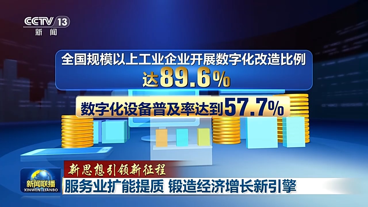 生产性服务业加速向专业化和价值链高端延伸,正在成为带动产业转型升级的重要力量。今天,以人工智能等为代表的新一代信息技术加速突破应用,我国工业互联网实现41个工业大类全覆盖。从“卖产品”到提供全链条服务,目前,全国规模以上工业企业开展数字化改造比例达89.6%,数字化设备普及率达到57.7%。