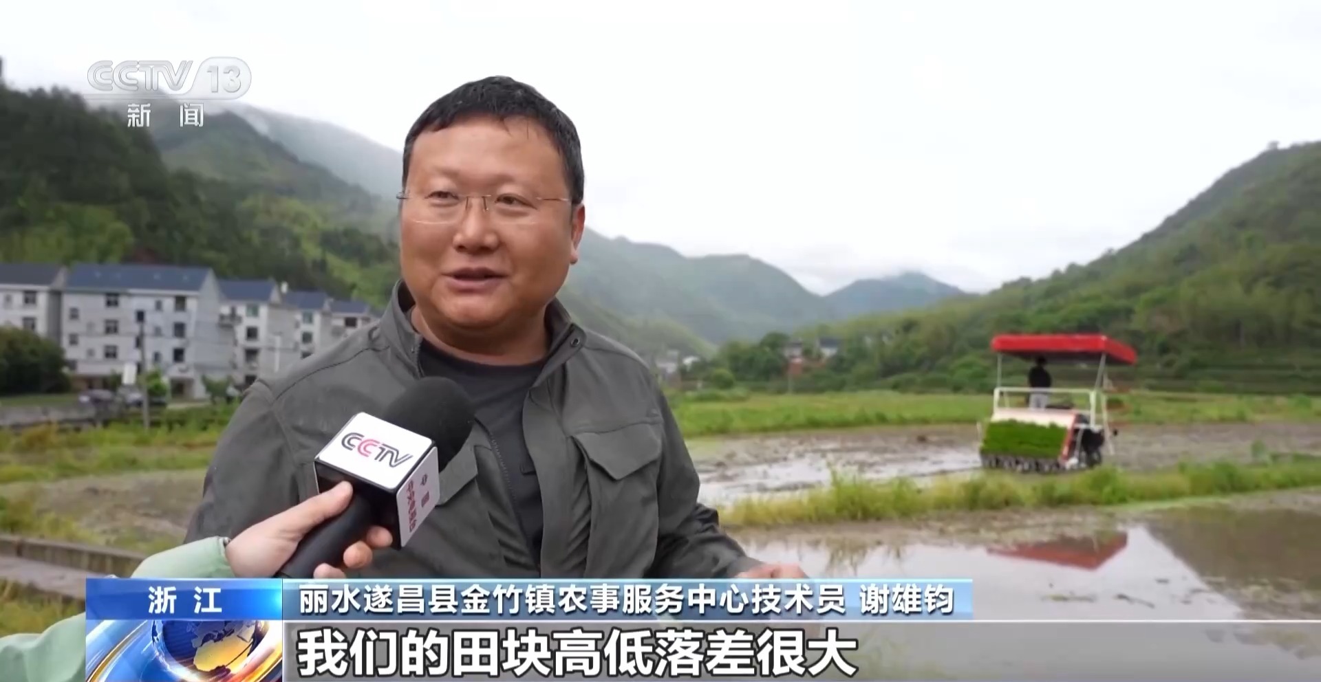 丽水遂昌县金竹镇农事服务中心技术员 谢雄钧:因为我们这是丘陵山区,田块高低落差很大,而且农机具犁田边要么会撞上去,要么就前面有很大一块耕不到 。